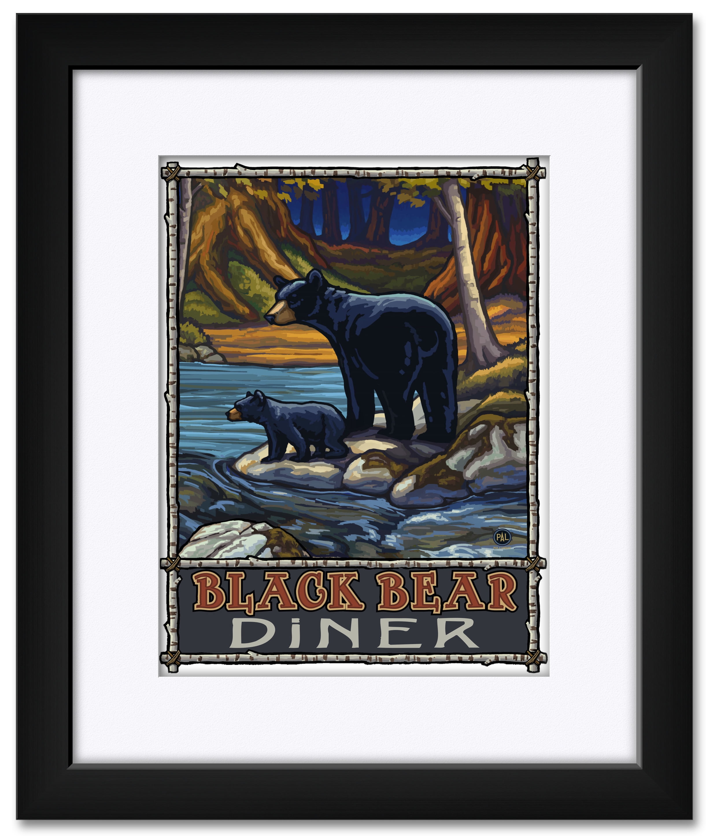 Black Bear Diner Bears In Stream Framed Matted Art Print By Paul A Lanquist Print Size 9 X 12 Framed Art Size 15 X 19 Walmart Com